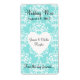 Elegant mini wine bottle labels done in a aqua blue and white damask pattern. A white heart, in the centre, has the bride and groom's names, in black script text. The names and other black text is ready to personalise for your wedding day. Great for individual wine or champagne bottles as favours for your wedding guests. Perfect as part of each place setting for the champagne toast.