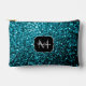 Aqua blue faux glitter sparkles Monogram Accessory Pouch