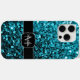 Aqua blue faux glitter sparkles Monogram Case-Mate iPhone Case