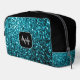 Aqua blue faux glitter sparkles Monogram Dopp Kit