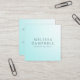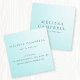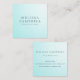 Feminine, aqua blue business cards or personal profile cards with your name and title/company name on the front on a soft, aqua blue colour gradient. On the back are customisable template fields for your name, title/company name/speciality and contact information.