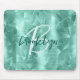 Aqua Blue Geometric Brushed Metal Script Monogram Mouse Pad