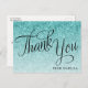 This trendy aqua blue ombre glitter personalised thank you postcard features faux sparkly glitter and a fancy script lettering. Add your information using the template form. Additional options for text and layout are available if you choose the "customise further" option at the bottom of the template form.
