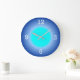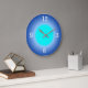 A bright clock on background of blue with aqua glow effects . This clock has very pale blue numerals to match. Customise to change numeral colour or clock hands
