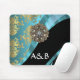 PERSONALIZE this chic elegant stylish vintage gold damask pattern on a aqua blue background and a modern black swirl design ribbon , with your own text, name or monogram, initials .