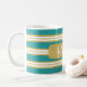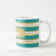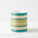 Aqua Blue Gold Stripe Pattern Custom Name Coffee Mug