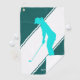 The woman golfer in your life will love this personalised golf towel! A aqua blue silhouette image of a female golfer who is putting. The image is placed on a background diagonal of teal blue contrasted with white. At the bottom right is your custom text in white. Very classy and distinctive!