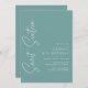 Modern and simplistic sweet 16 invitations featuring a handwritten script font. White font on a deep aqua background.