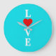 Aqua Blue LOVE Heart Large Clock