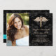 Add your photo or favourite picture to these elegant black and gold caduceus and medical school graduation announcements and invitations with a printed turquoise bright aqua blue stitched ribbon look design on back. Customise it to say whatever you want on the back and front of this doctor and physician med school announcement and dinner party celebratory invitation. Artwork © Chrissy H. Studios, LLC. All rights Reserved.