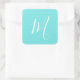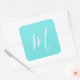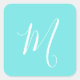 Aqua Blue Monogram Initial Square Sticker