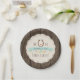 Aqua Blue Monogrammed Horseshoe Heart Wedding Paper Plate