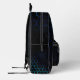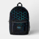 Aqua blue neon honeycomb geometry Monogram Black Printed Backpack