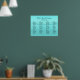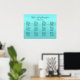 Wedding seating chart poster with ocean background.  Aqua blue color with ocean water image.  The seating chart has black text in both script, for table numbers, and printed text for guests' names.  Married names at top in elegant and modern, hand-written font with one or two lines for date and location of celebration.  Each table number section has room for up to eight guests, or list fewer as needed.  Tables are listed horizontally, but that is easy to change by changing the numbers using the templates.  For fewer tables, simply delete sections as needed, keeping the look symmetrical.