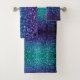 Cool unique faux sparkly homedecor bathroom towel set for her. Beautiful girly glamourous dark and light blue shiny glitters sparkles aqua purple ombre. Photo of cyan and dark blue sparkles not actual glitter!