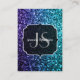 Aqua blue Ombre faux glitter sparkles Monogram Business Card