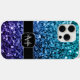 Aqua blue Ombre faux glitter sparkles Monogram Case-Mate iPhone Case