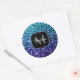 Aqua blue Ombre faux glitter sparkles Monogram Classic Round Sticker