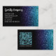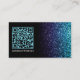 Aqua blue Ombre faux sparkle black elegant QR code Business Card