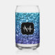Aqua blue Ombre sparkles Custom Monogram Can Glass