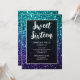 Aqua blue Ombre sparkles Sweet 16 elegant script Invitation