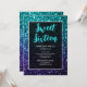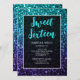Aqua blue Ombre sparkles Sweet 16 elegant script Invitation