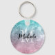 Aqua blue Pink ombre sea galaxy abstract Monogram Key Ring