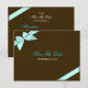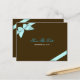 Aqua blue ribbon on chocolate brown background. Elegant and simple save the date postcard template. Size 5.6" x 4.25" postcard. Texts can be changed or deleted directly on the product page. Click "Customise It" button to change texts, fonts or colours. If you need help with the customisation of this product, please don't hesitate to send me a message. Ribbon is a printed image. Original design by ©Ruxique~Ruxandra Proksch.