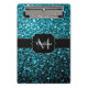 Aqua blue shiny faux glitter sparkles Monogram Mini Clipboard