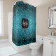 Aqua blue shiny faux glitter sparkles Monogram Shower Curtain