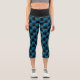 Aqua blue sparkles diamond geometric pattern black capri leggings