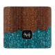 Aqua blue sparkles glitter rustic wood Monogram Cutting Board
