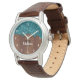 I like the illustrative watch with the lady on it. It is a great reminder that I am blessed and it has a very sturdy leather band. The colors are true and vibrant. Love the color of the Leather also. Very nice.