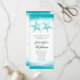 Elegant white beach wedding programs with turquoise bright lovely starfish couple.