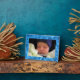 Create your own tabletop photo plaque with an easel with an aqua blue photo that will print with your own image.