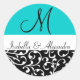 Aqua Blue Swirl Damask Monogram Wedding Stickers