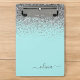 Aqua Blue - Teal and Silver Glitter Monogram Mini Clipboard