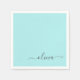 Aqua Blue Teal Girly Script Monogram Name Modern Napkin