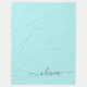 Aqua Blue Teal Modern Script Girly Monogram Name Fleece Blanket