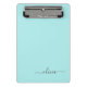 Aqua Blue Teal Modern Script Girly Monogram Name Mini Clipboard