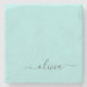 Aqua Blue Teal Modern Script Girly Monogram Name Stone Coaster