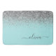 Aqua Blue Teal Silver Glitter Monogram Bath Mat