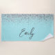 Aqua Blue Teal Silver Glitter Monogram Beach Towel