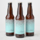 Aqua Blue Teal Silver Glitter Monogram Beer Bottle Label