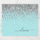 Aqua Blue - Teal and Silver Sparkle Glitter Script Monogram Name Beer Bottle Label. This makes the perfect sweet 16 birthday, wedding, bridal shower, anniversary, baby shower or bachelorette party gift for someone that loves glam luxury and chic styles.