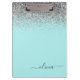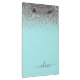 Aqua Blue Teal Silver Glitter Monogram Clipboard
