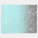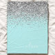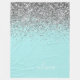 Aqua Blue Teal Silver Glitter Monogram Fleece Blanket