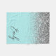 Aqua Blue Teal Silver Glitter Monogram Fleece Blanket
