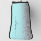 Aqua Blue - Teal and Silver Sparkle Glitter Script Monogram Name Golf Putter Cover. This makes the perfect sweet 16 birthday, wedding, bridal shower, anniversary, baby shower or bachelorette party gift for someone that loves glam luxury and chic styles.