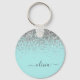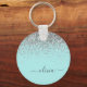 Aqua Blue Teal Silver Glitter Monogram Key Ring